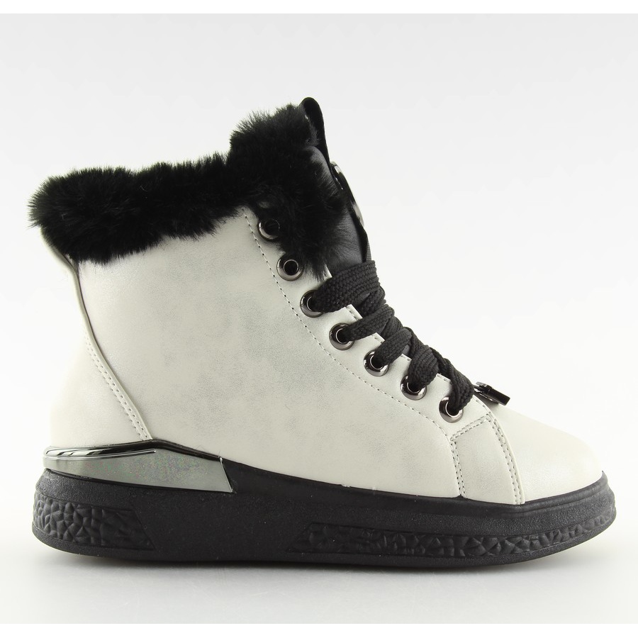 Grazie alla morbida pelliccia all'interno, queste sneakers ti terranno al caldo anche nelle giornate più fredde. Elementi decorativi dorati e una placca argentata conferiscono loro un carattere unico, e l'elegante pelliccia attorno alla tomaia attira l'attenzione e aggiunge eleganza. Realizzati in pelle ecologica di alta qualità, hanno una finitura opaca, che li rende non solo alla moda, ma anche rispettosi dell'ambiente.