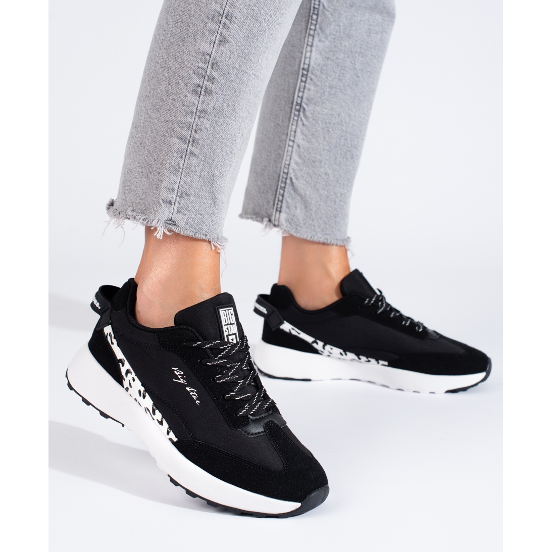 Presentiamo le sneakers nere LL274956 del rinomato marchio Big Star: una perfetta combinazione di stile, comfort e funzionalità. Queste scarpe sportive da donna si distinguono per un design moderno che funzionerà bene sia nell'uso quotidiano che durante le uscite più attive.