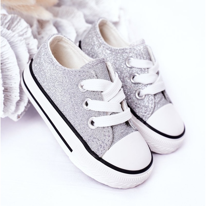 Sneaker bling-bling in argento per bambini e sneaker eleganti e confortevoli per le ragazze, coperte da un delicato e luccicante glitter. La tomaia morbida e materiale si adatta perfettamente al piede e la suola non slitta garantisce stabilità durante il gioco.