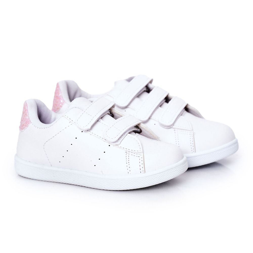 Dettagli: Sneakers per bambini con velcro bianco e rosa
