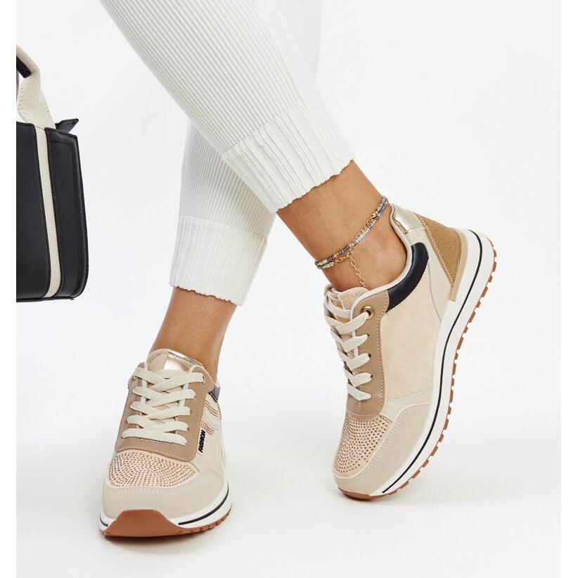 Se stai cercando scarpe che combinano comfort e aspetto alla moda, le sneaker beige su una piattaforma con zirconi mauli saranno un successo!