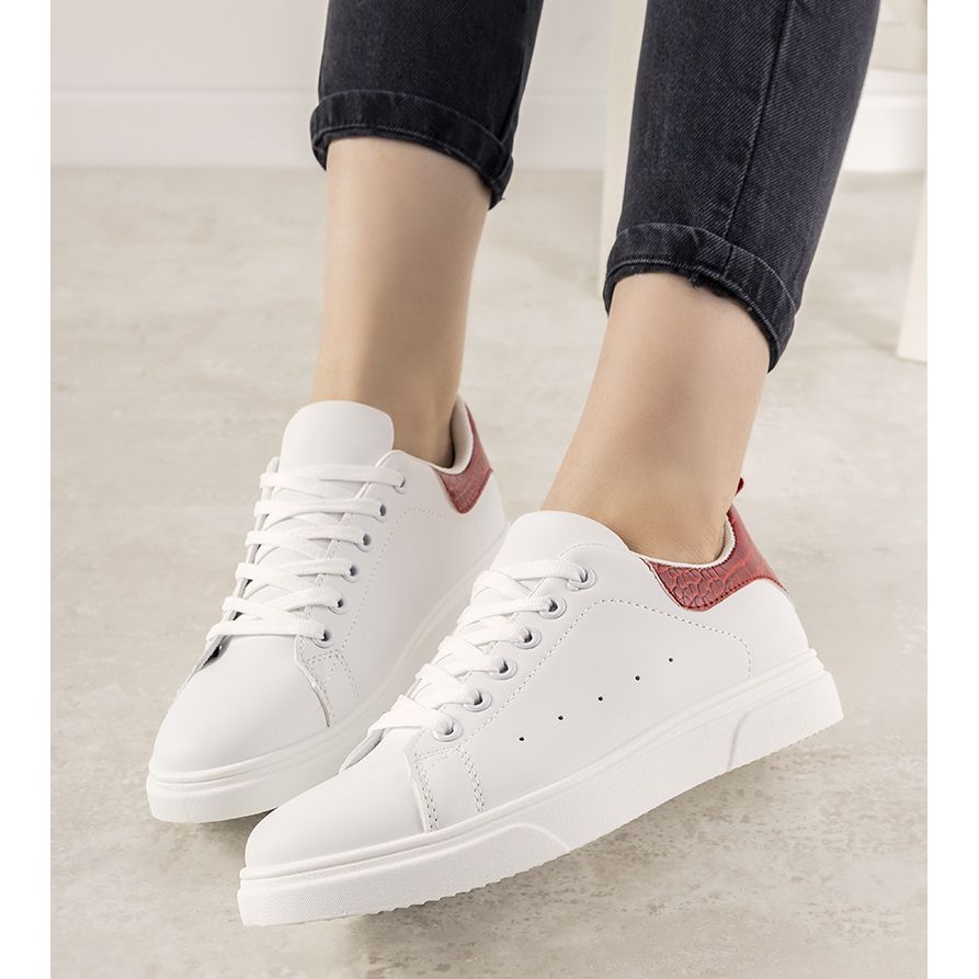 Le sneakers Influ bianche e rosse con suola spessa sono la scelta perfetta per la prossima stagione. Il loro design moderno li rende un complemento perfetto per qualsiasi stile. La tomaia, realizzata in pregiata pelle ecologica, è decorata da un elegante inserto rosso con motivo di pelle di coccodrillo, che aggiunge un carattere unico.
