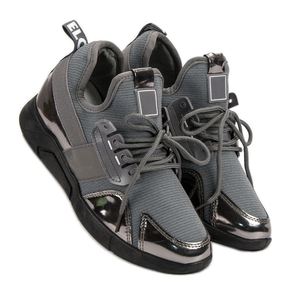 Presentiamo sneakers slip-on grigie che attireranno sicuramente l'attenzione di ogni amante della moda. Il loro elegante colore grigio è completato da accenti discreti e lucenti, che conferiscono loro un carattere unico. Le sneakers sono montate su un plateau alto 6 cm, che sarà un vero successo nelle prossime stagioni.