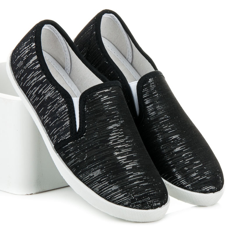 Presentiamo sneakers slip-on con filo argentato nel classico colore nero, perfette per ogni donna che apprezza il comfort e lo stile. Queste scarpe basse sono realizzate in tessuto di alta qualità, che garantisce non solo comodità di indossamento, ma anche durata e resistenza all'uso quotidiano.