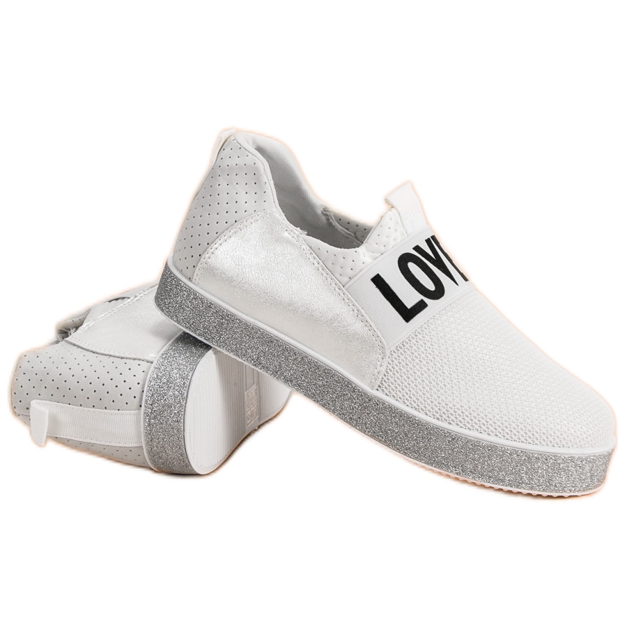 Presentiamo Sneakers Slip-on con Glitter in bianco di Bestelle: la scelta perfetta per le donne che apprezzano il comfort, lo stile e un po' di brillantezza nelle loro calzature di tutti i giorni. Queste sneakers estremamente alla moda si distinguono per un audace accento argentato, che combinato con il classico traforo bianco crea un design unico.