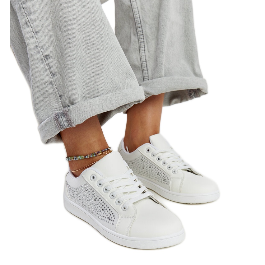 Il design alla moda di scarpe da ginnastica bianca con zirconi attira l'attenzione e le rende un elemento unico di ogni stilizzazione estiva. Il naso rotondo dà loro universalità e la chiusura allacciata ti consente di adattare le calzature alle esigenze individuali.