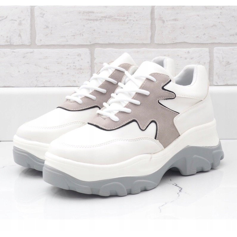 Le sneakers sportive bianche e grigie realizzate in ecopelle E3260 sono una proposta ideale per le donne attive che apprezzano il comfort e il design moderno. Realizzate in ecopelle di alta qualità, queste enormi scarpe offrono non solo un bell'aspetto, ma anche una lunga durata, rendendole perfette per le attività quotidiane.