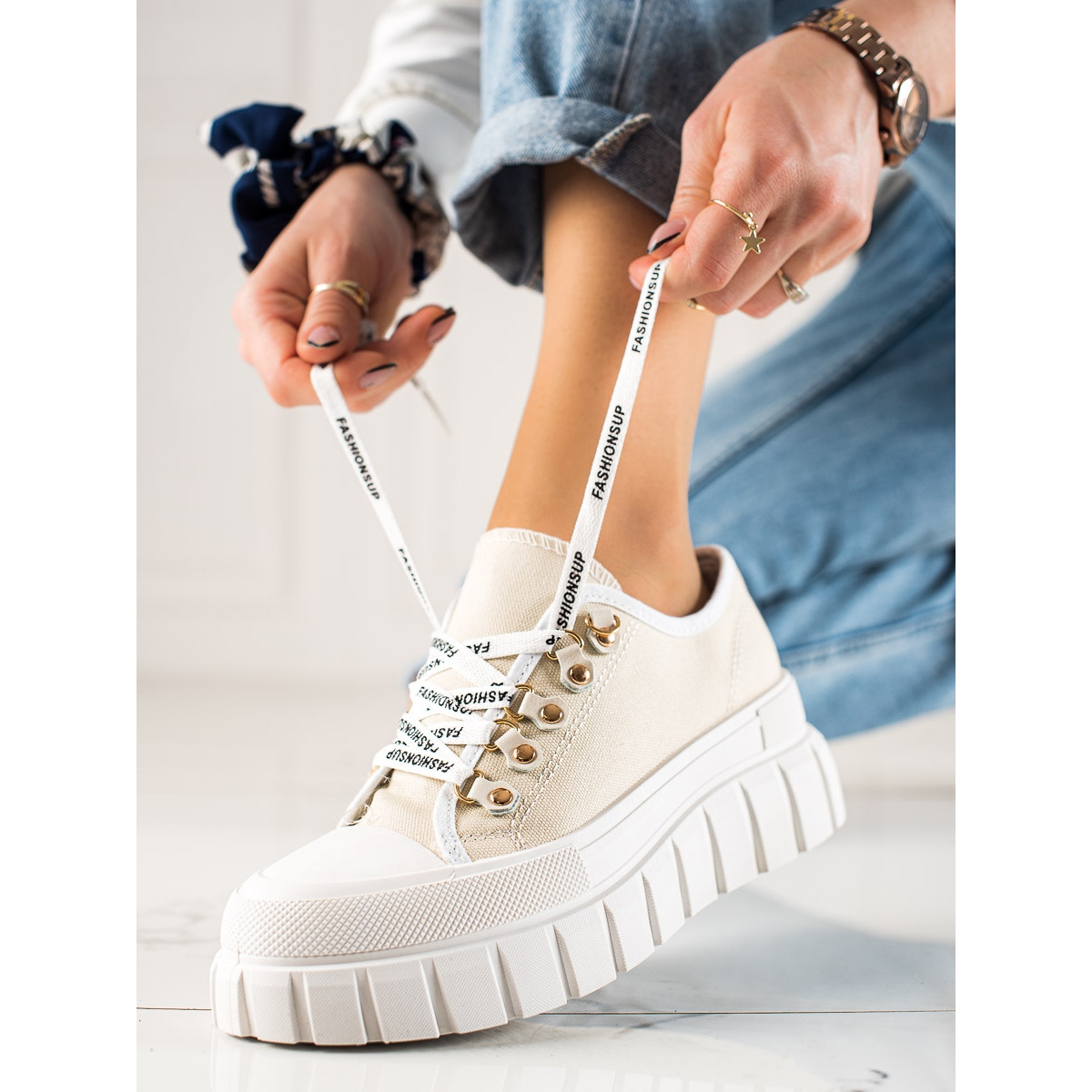 Scopri le sneakers con plateau allacciate, comode e alla moda del produttore TRENDI, perfette per lo stile di tutti i giorni. Queste scarpe beige sono la scelta ideale per le donne che apprezzano il comfort e un look alla moda.