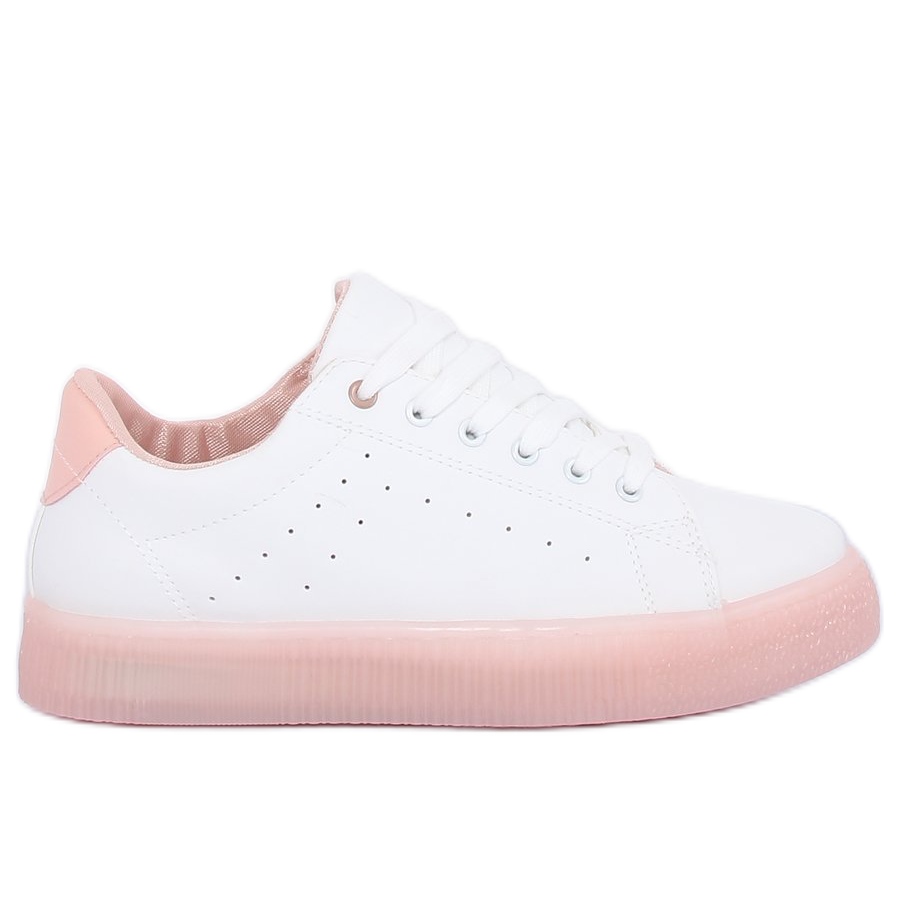 Presentiamo scarpe da ginnastica con la suola alta in una combinazione alla moda di bianco e rosa - modello LA38P Pink. Queste scarpe da donna uniche sono la scelta perfetta per ogni amante delle soluzioni eleganti e confortevoli. Il loro taglio classico li rende adatti sia allo stile sportivo che a quello quotidiano.