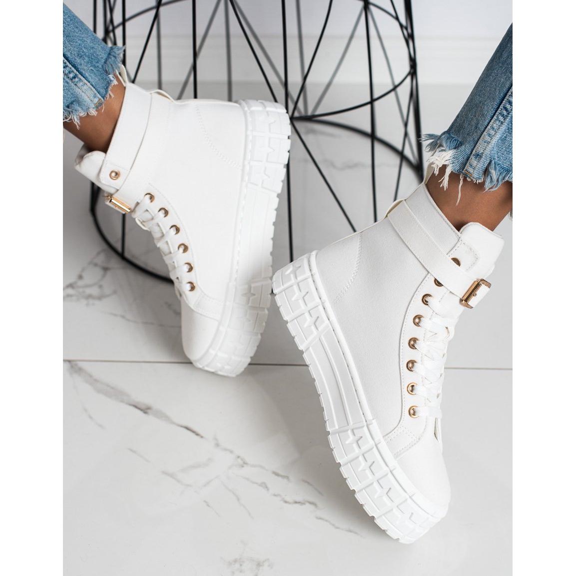 Queste sneakers bianche di Goodin sono un must in ogni guardaroba. Sono perfetti per lo stile di tutti i giorni, aggiungendo loro un carattere sportivo. Si abbinano perfettamente a jeans, gonne e outfit estivi più leggeri. Concedetevi un po' di lusso dalla collezione KeeShoes e godetevi ogni giorno un look alla moda e un comfort!