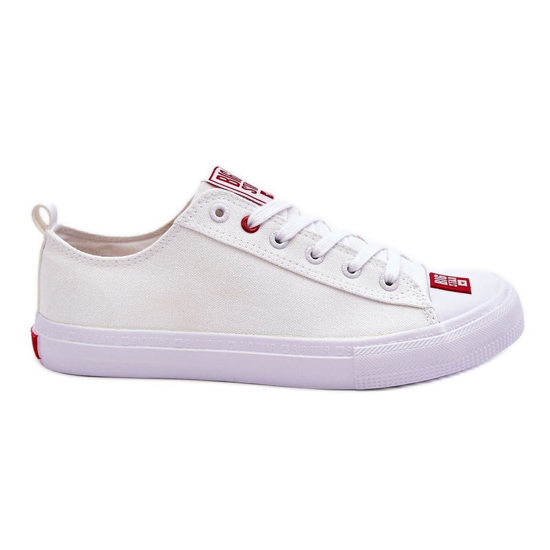 Sneaker da uomo universale del marchio di grandi stelle polacco, realizzato in materiale tessile durevole. Un design semplice e senza tempo in bianco puro con un naso in gomma e un emblema discreto nella parte anteriore e il modello rende il modello funzionante ogni giorno - per jeans, chino o pantaloncini estivi.