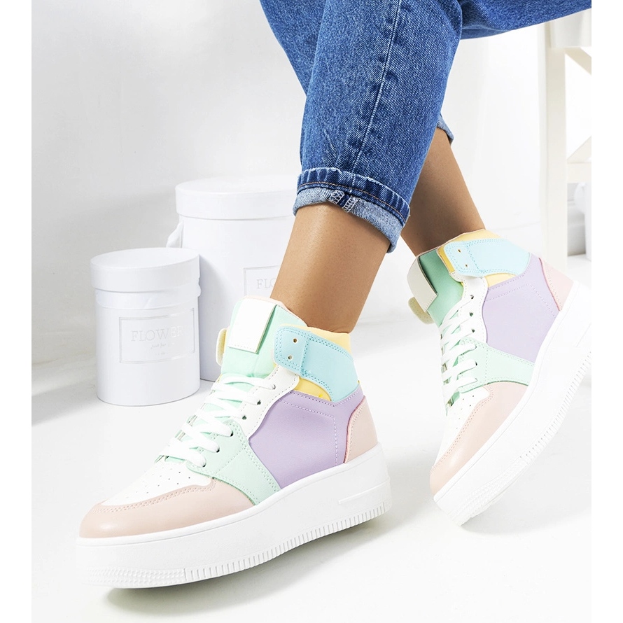 Classico e allo stesso tempo Avant -Garde - Queste sneaker viola alla caviglia attraggono look dal primo momento. La suola alta, bianca e la piattaforma elevata (4,5 cm) aggiungono un carattere sportivo e vacilla otticamente la figura. Una tomaia in pelle ecologica in una tonalità pastello di viola va bene con le stilizzazioni estive e urbane.