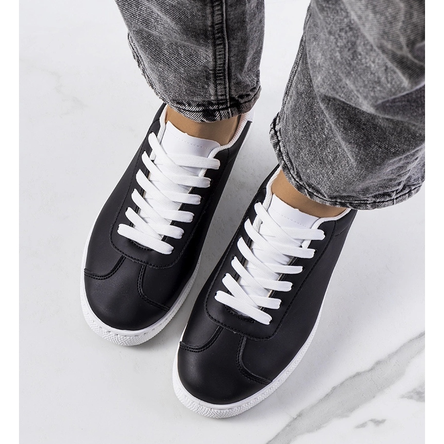 Sneaker basse classiche in nero con dettagli bianchi, che completeranno perfettamente le stilizzazioni primaverili ed estive. Un taglio semplice e senza tempo con un naso rotondo e una suola in gomma bianca crea un modello universale che abbina sia i jeans che gli abiti estivi.