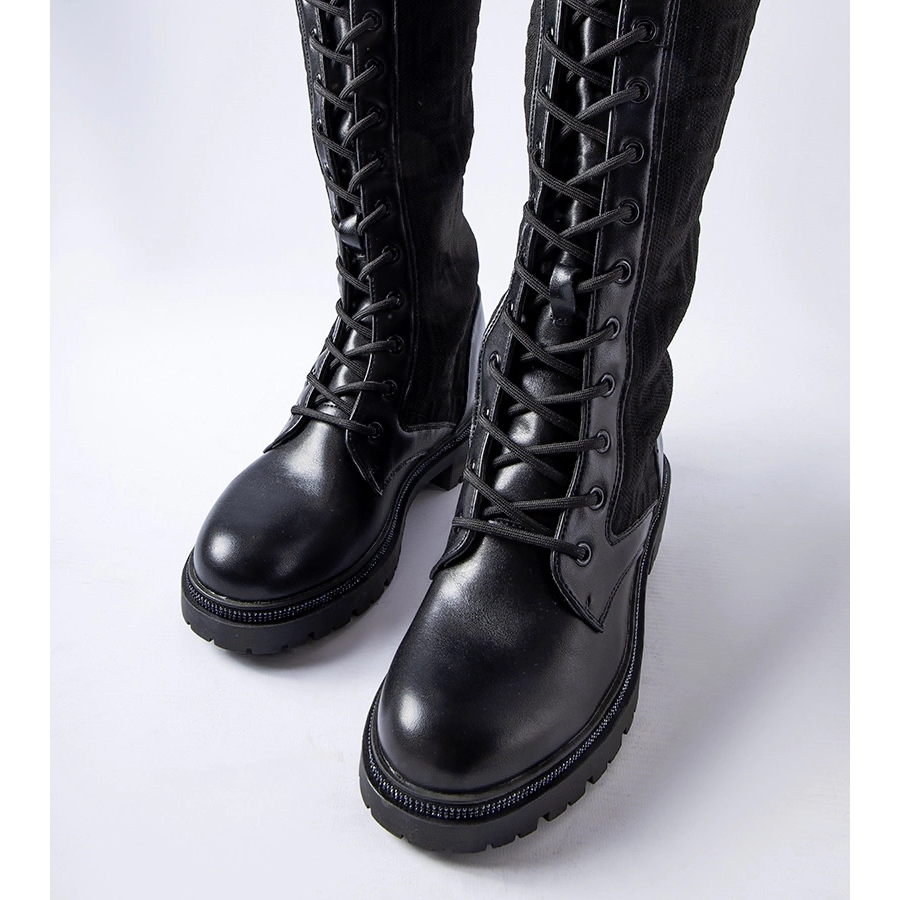 Pielin's Socks è una combinazione di design moderno e comfort quotidiano. Realizzato in pelle ecologica in un classico colore nero, decorato con sottili zirconi che danno alle scarpe un bagliore unico. Grazie alla tomaia flessibile nello stile "calzino", si adattano al polpaccio e la blocco nella parte anteriore ti consente di regolare accuratamente l'abbinamento. Un tallone basso (circa 4,5 cm) garantisce stabilità e aggiunge leggerezza alla figura, rendendo gli stivali comodi da indossare ogni giorno.