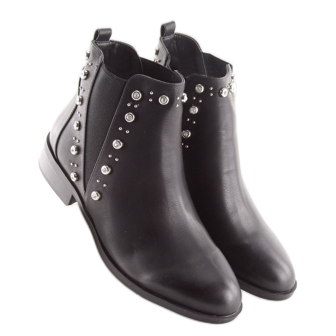 La tomaia in pelle ecologica è decorata con borchie argentate e pietre sottili, che conferiscono loro un'atmosfera unica. Grazie ai caratteristici inserti elastici laterali, indossare questi stivaletti Chelsea risulta veloce e comodo, il che permette di abbinarli facilmente a vari stili.