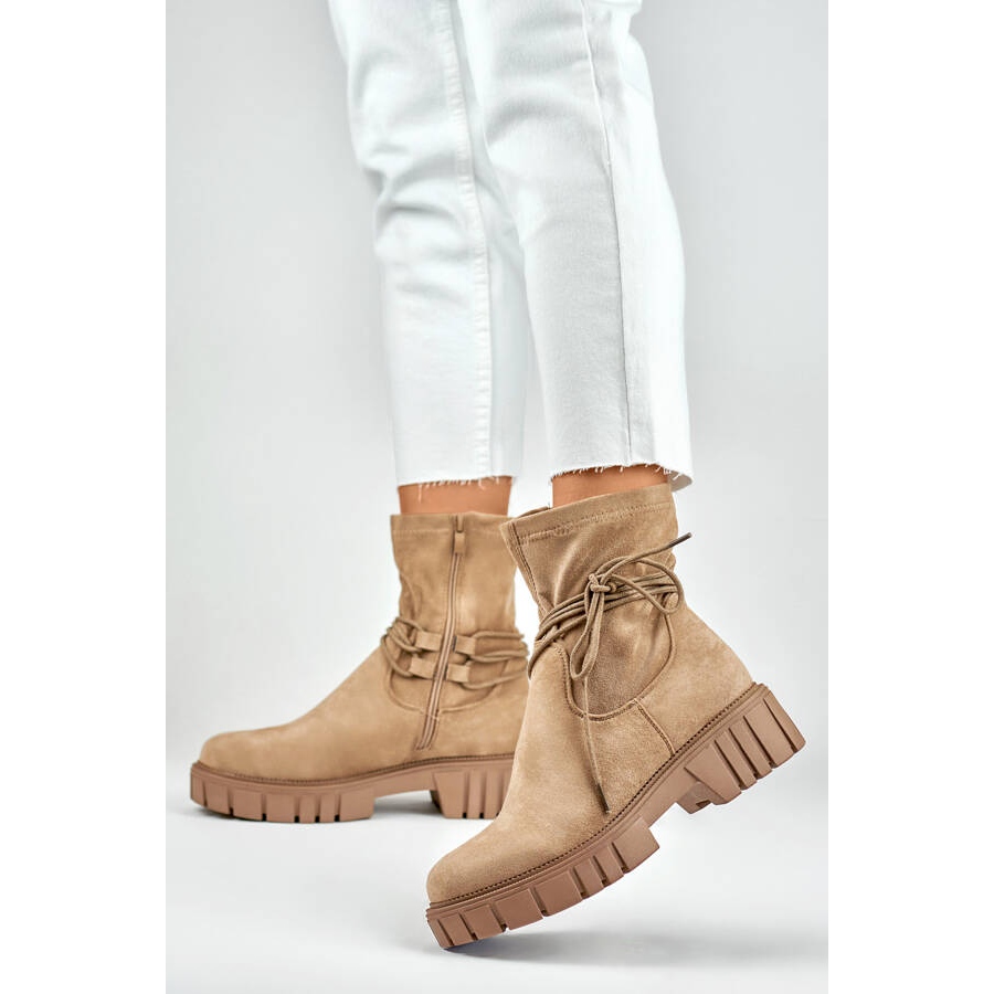 Dettagli: Stivaletti da donna con tomaia stringata elastica, beige DE1127NU