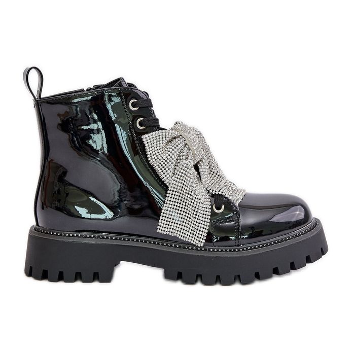 Dettagli: Stivaletti da donna in vernice con fiocco, Nero Ocenttia
