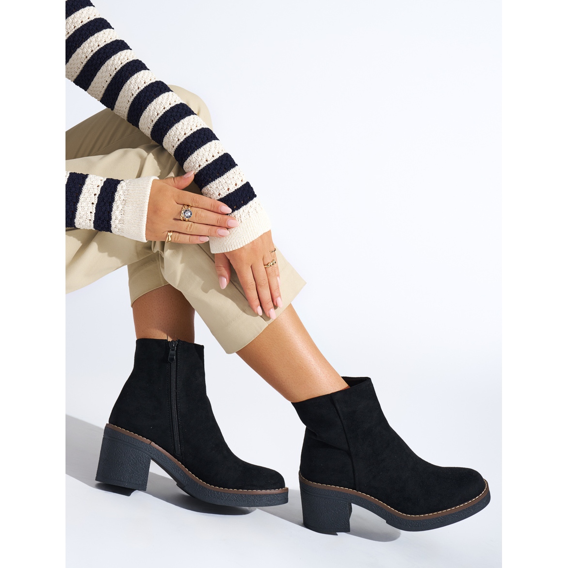 Il colore nero e l'aspetto minimalista e assoluto rendono questi stivali universali e abbinano molti stili diversi. La chiusura a zip rende più facile indossare e rimuovere le scarpe. Un ulteriore vantaggio è un tallone incorporato e irrigidito che aggiunge stabilità.