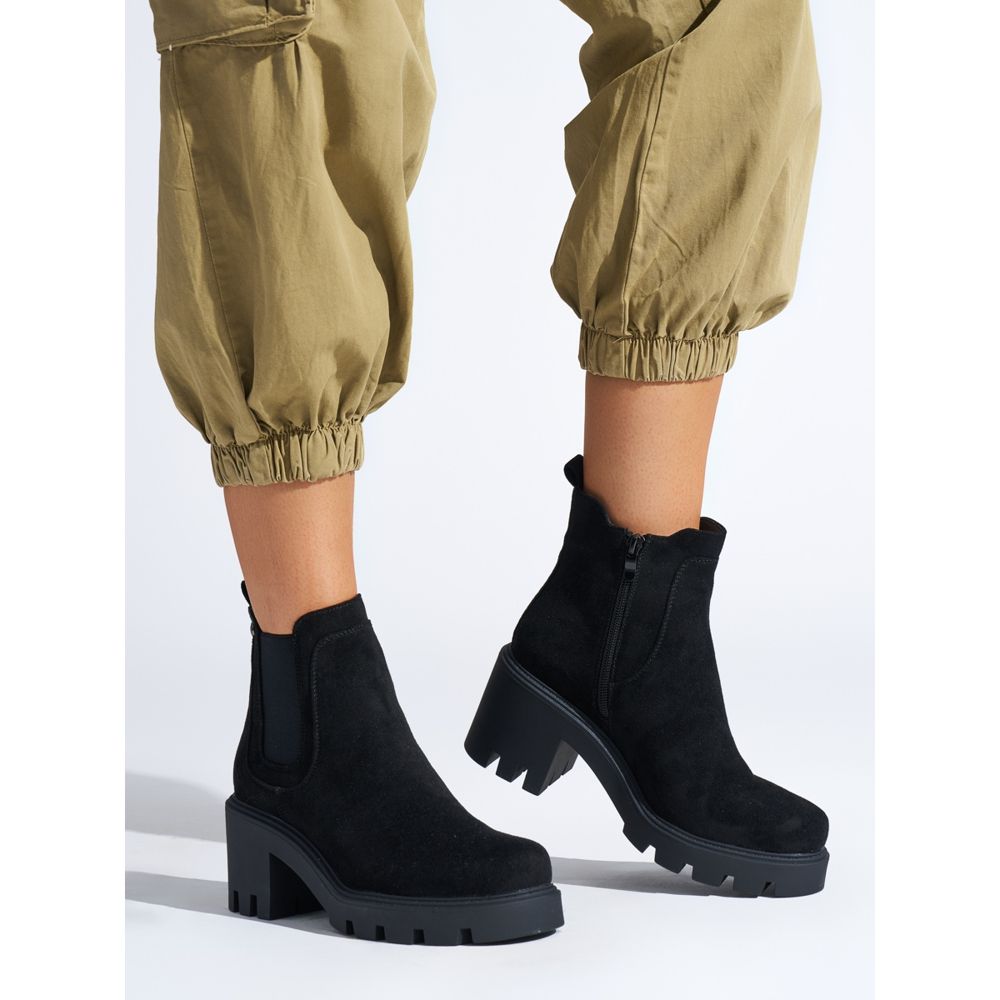 Gli stivali hanno un tallone build -in e irrigidito, che fornisce un eccellente supporto per il piede. L'alto alto 12 cm enfatizza il cubo e allo stesso tempo aggiunge loro un aspetto caratteristico e alla moda. L'altezza del tallone è di 7 cm, il che li rende comodi quando si indossano tutto il giorno.