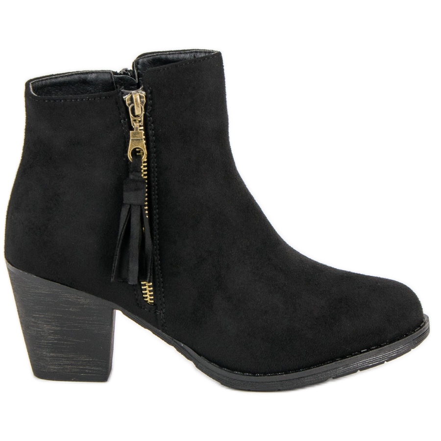Gli stivaletti in pelle scamosciata nera sono la scelta perfetta per le donne che vogliono unire stile e comodità. Questi eleganti stivaletti con tacco largo di 7,5 cm non solo aggiungono classe a qualsiasi stile, ma assicurano anche stabilità e comfort quando indossati. Realizzati in pelle scamosciata ecologica di alta qualità, gli stivali sembrano estremamente impressionanti e il loro colore nero li rende abbinabili a molti outfit diversi.