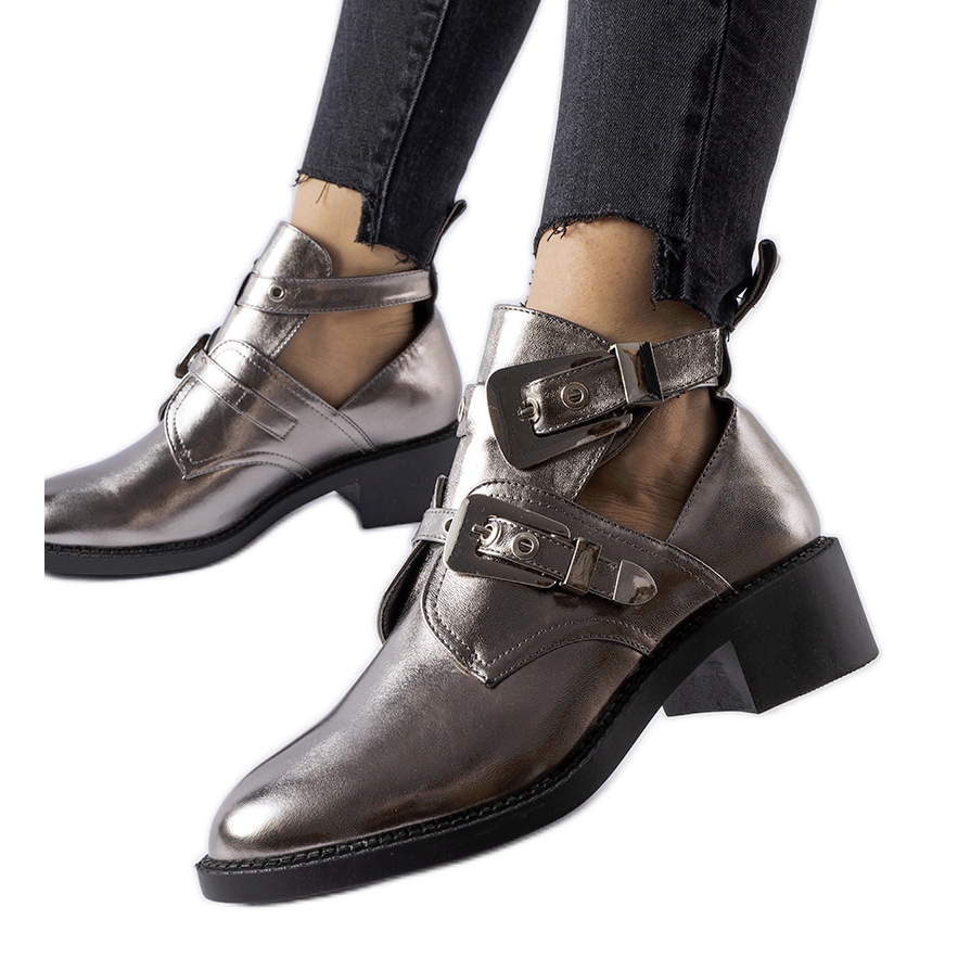 Scopri uno stile unico con gli stivaletti Ritaldi in argento! Queste scarpe scure e metalliche si distinguono per il taglio forte e la punta smussata alla moda. Realizzati in pelle ecologica di alta qualità, garantiscono comfort ed eleganza per tutti i giorni. Grazie al comodo montante alto 4,5 cm ti sentirai stabile e sicuro, indipendentemente dalle sfide che la tua giornata comporta.