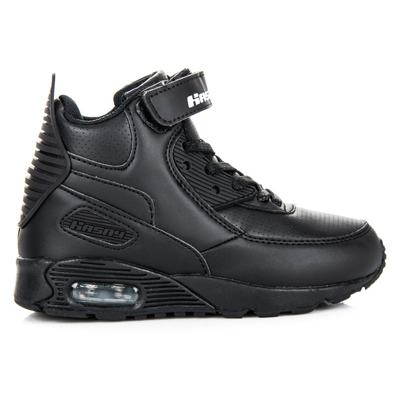 Scarpe per bambini classiche e universali di Hasby, realizzate in pelle ecologica di alta qualità. Il modello sopra la caviglia fornisce un supporto aggiuntivo per l'articolazione della caviglia e il design semplice e nero rende le calzature adatte sia per gli stili di tutti i giorni che per quelli leggermente più formali, per ragazze e ragazzi.