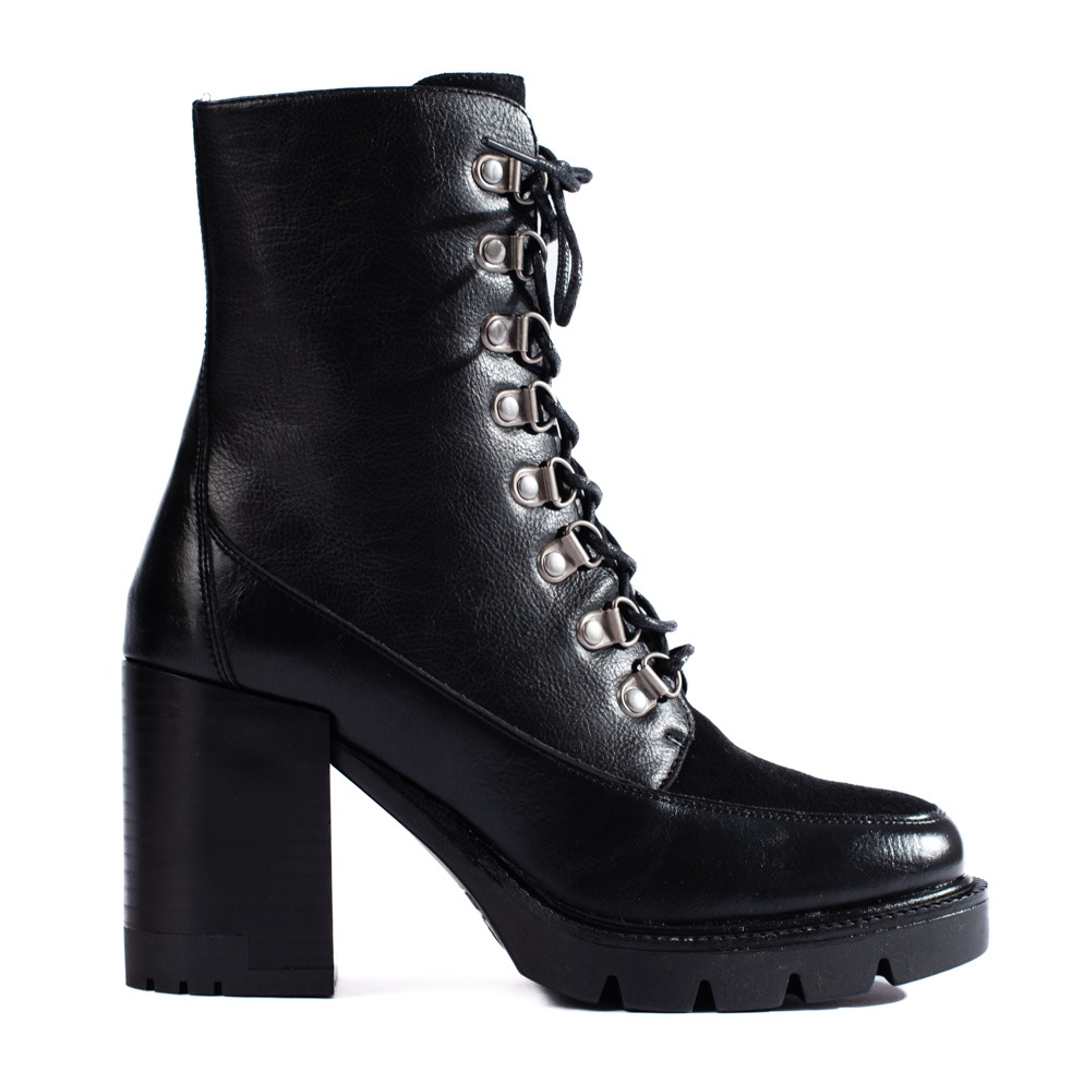 Lasciati stupire dal classico e dall'eleganza con gli stivaletti alla moda con tacco alto di Vinceza. Gli stivaletti neri allacciati sono un must nel guardaroba di ogni donna che apprezza la combinazione di stile senza tempo e comodità. Osate indossare un tacco e attraversate la vita con sicurezza, sempre passo dopo passo con queste scarpe uniche.