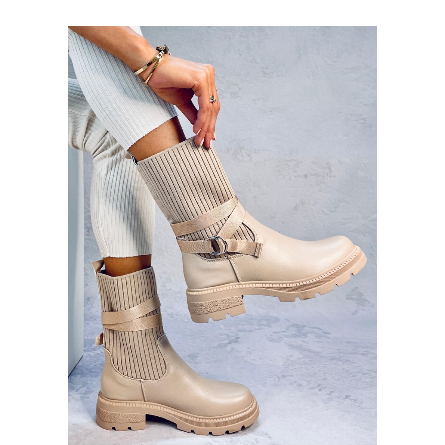 Scopri una nuova dimensione di comfort e stile con stivali con un kaki superiore traballante flessibile di Inello. Queste scarpe da donna su una suola spessa combinano un design moderno con il massimo comfort di indossamento. La parte superiore di tessuto flessibile, che ricorda una calza, si adatta perfettamente alla forma della gamba, fornendo non solo comfort, ma anche un aspetto alla moda.