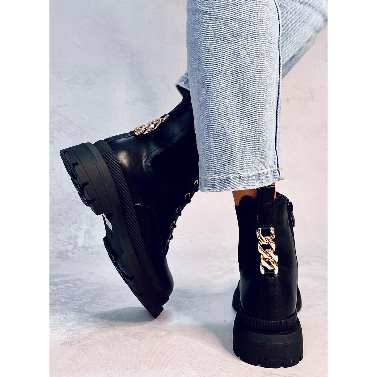 Stivali neri goffi - nero, intrecciato con una catena decorativa