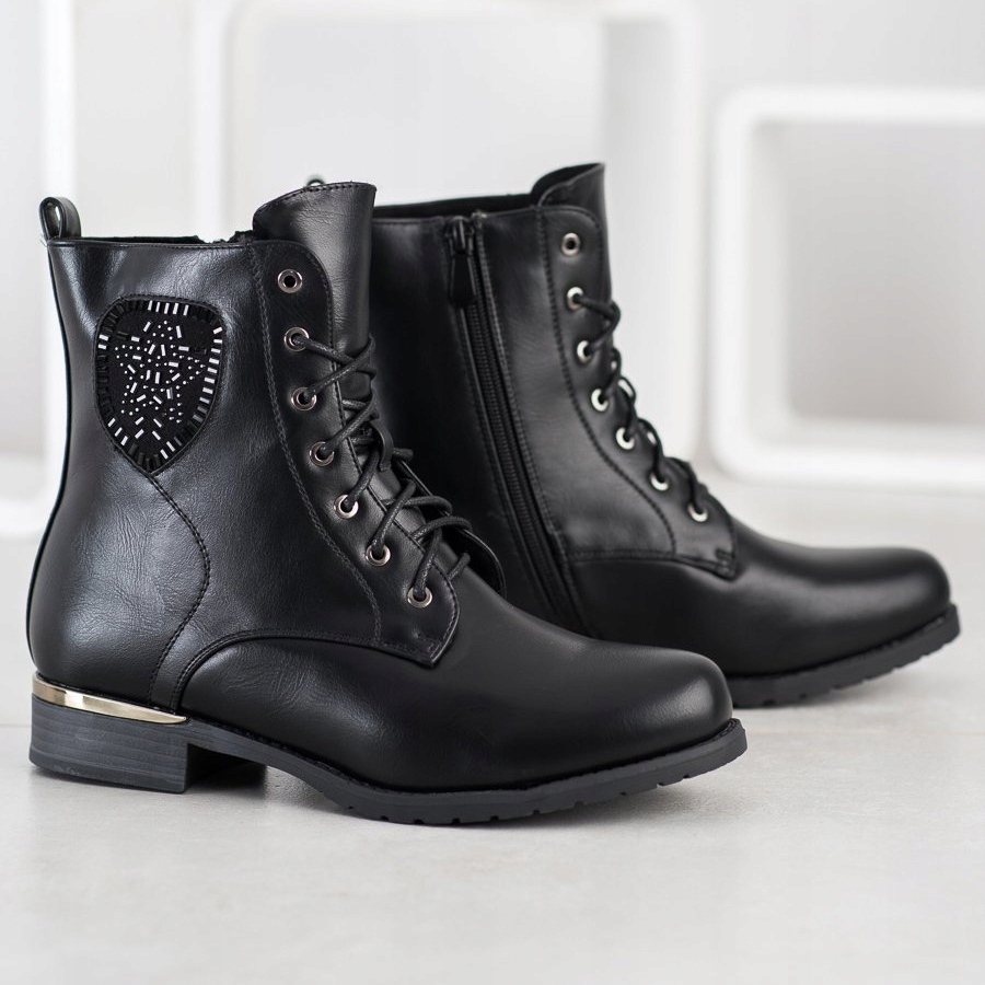 Gli stivali neri eleganti ed eleganti di Gogo sono la scelta ideale per le donne che apprezzano l'universalità e il design sofisticato nelle calzature. Realizzati in pelle ecologica di alta qualità, gli stivaletti con tomaia stringata seguono la tendenza della moda ecologica garantendo allo stesso tempo libertà di stile e comfort di utilizzo.