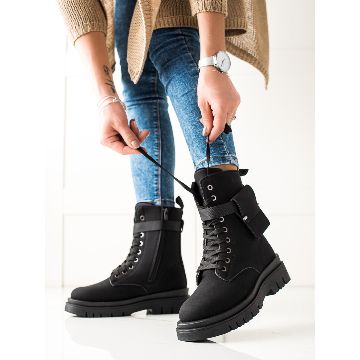 TRENDI TRENDI Stivaletti stringati con taschino nero