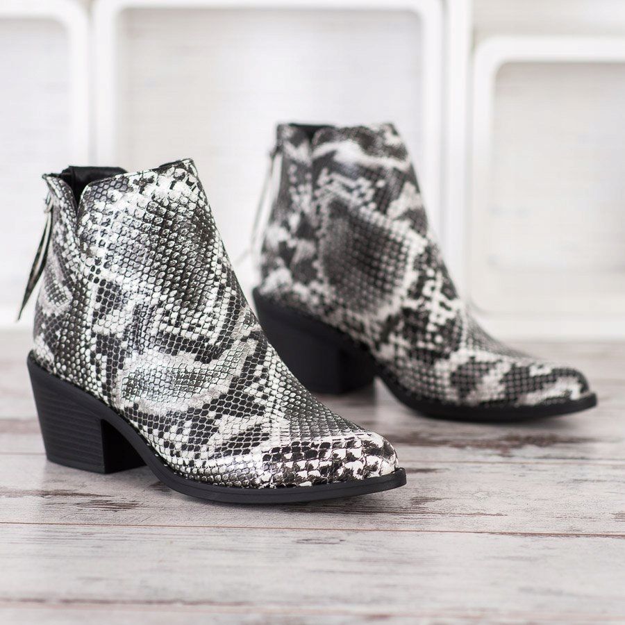 Scopri uno stile unico con gli stivaletti Snake Print della marca SHELOVET! Questi stivaletti da donna bianchi e neri sono realizzati in pelle ecologica di alta qualità che imita un motivo animale, aggiungendo un tocco di stravaganza al tuo stile quotidiano. La tomaia alta 24 cm fino alla caviglia e il tacco a blocco da 6,5 cm assicurano stabilità e comfort per tutta la giornata.