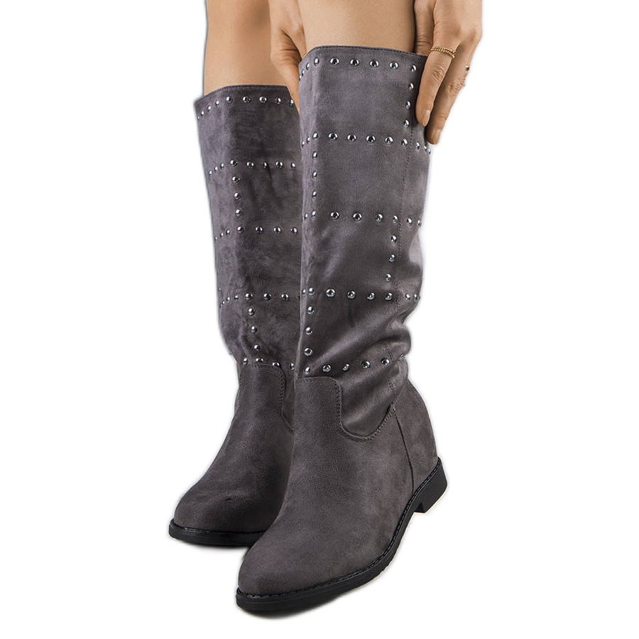 Dettagli: Stivali a cuneo grigio con borchie