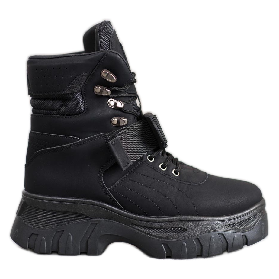 La pratica allacciatura consente allo stivale di adattarsi perfettamente al piede, e la chiusura con fibbia aggiuntiva è un elemento sia decorativo che funzionale, consentendo di indossare e togliere rapidamente le scarpe. Un inserto realizzato in materiale diverso garantisce calore e comfort di utilizzo.