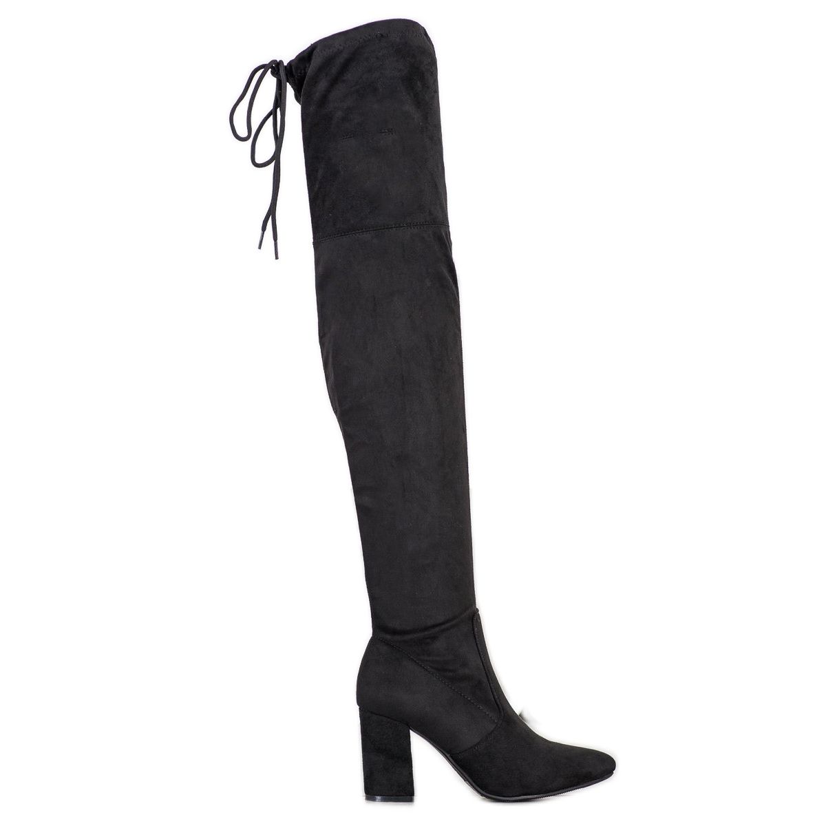 La tomaia che arriva sopra il ginocchio fa sì che queste scarpe enfatizzino perfettamente le gambe, e l'altezza del tacco di 8 centimetri a forma di montante garantisce comfort e stabilità quando indossate. Realizzati in pelle scamosciata ecologica, i moschettieri non sono solo estetici, ma anche rispettosi dell'ambiente.
