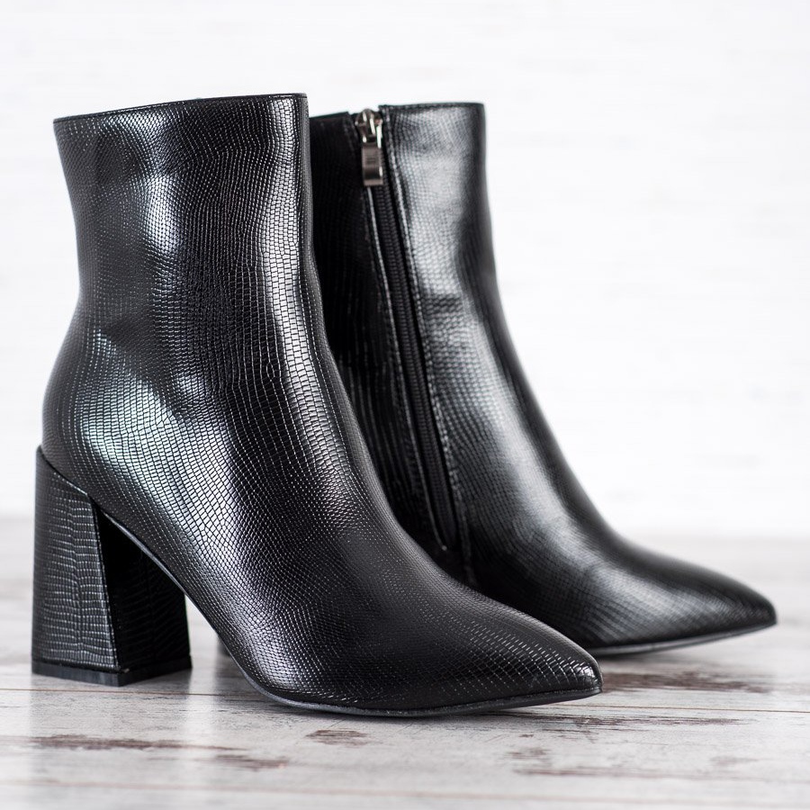 Questi stivaletti sono perfetti sia per l'uso quotidiano che per le occasioni più eleganti, come festeggiamenti o uscite serali. Il design nero e sobrio senza motivo distintivo, combinato con un sottile accento di un motivo animale, conferisce loro un carattere unico.