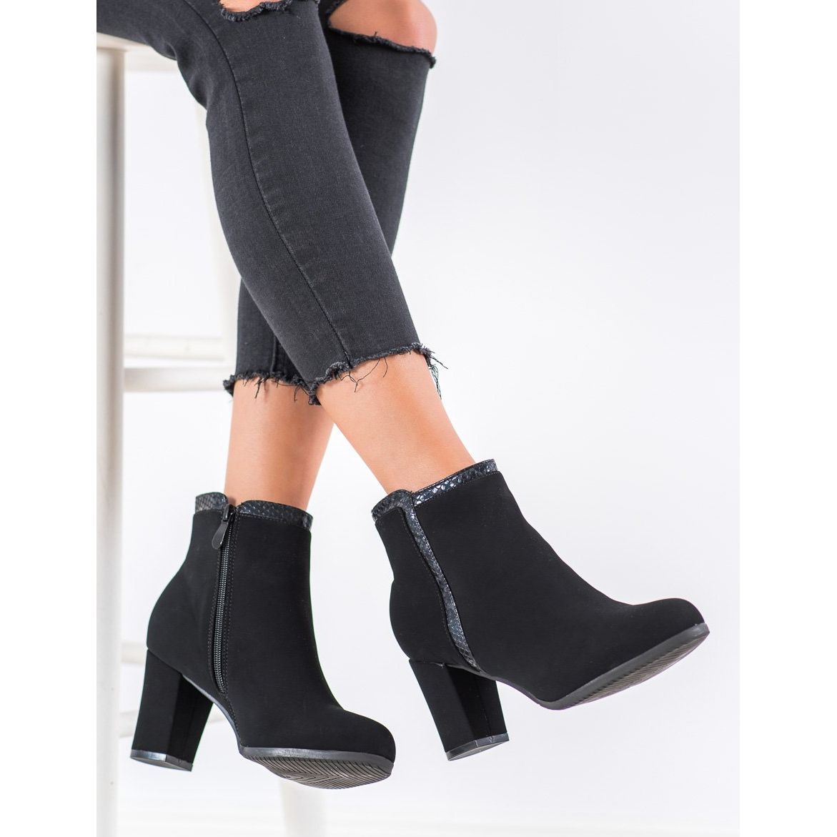 Gli eleganti stivaletti Weide in nero sono una scelta elegante per le donne che apprezzano la moda e il comfort. Realizzati in pregiata pelle ecologica scamosciata nera, combinano un look moderno con elementi classici. Grazie al tacco largo alto 7,5 cm, garantiscono stabilità e comfort nell'uso quotidiano e allo stesso tempo aggiungono eleganza a qualsiasi styling.