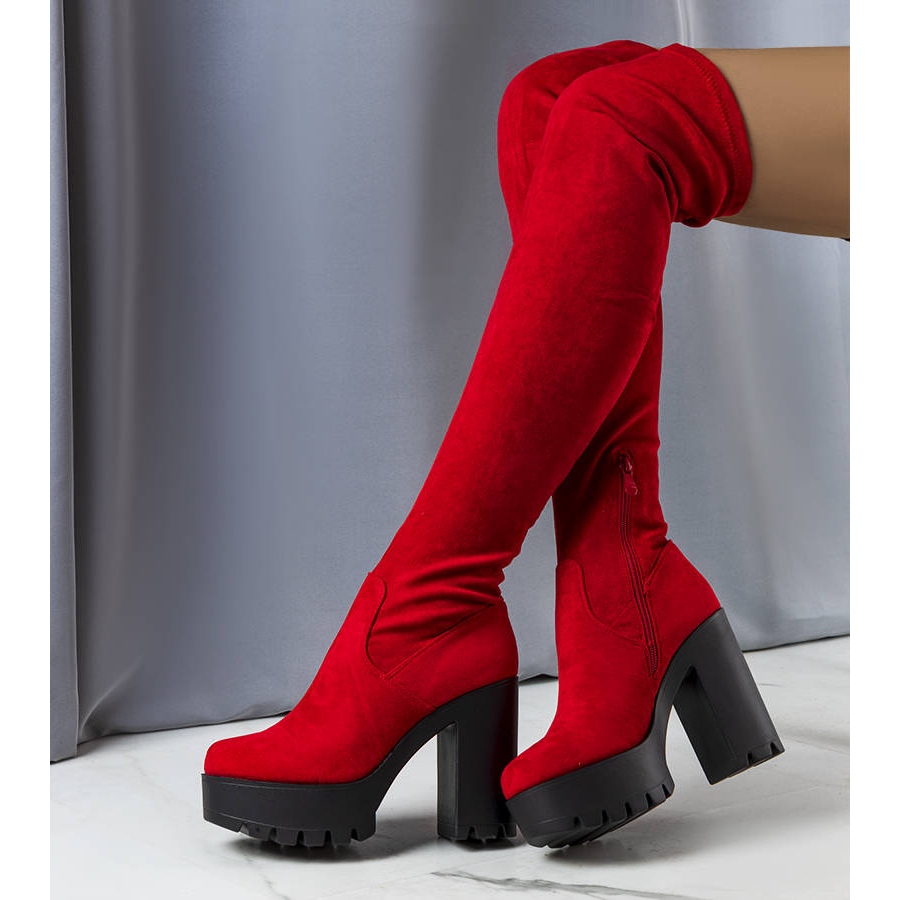 Scopri l'eleganza e lo stile con gli stivali alti Byron in pelle scamosciata rossa, che saranno un elemento insostituibile del tuo guardaroba. Questi esclusivi stivali sopra il ginocchio, realizzati in eco-pelle scamosciata di alta qualità, non sono solo impressionanti, ma anche comodi.