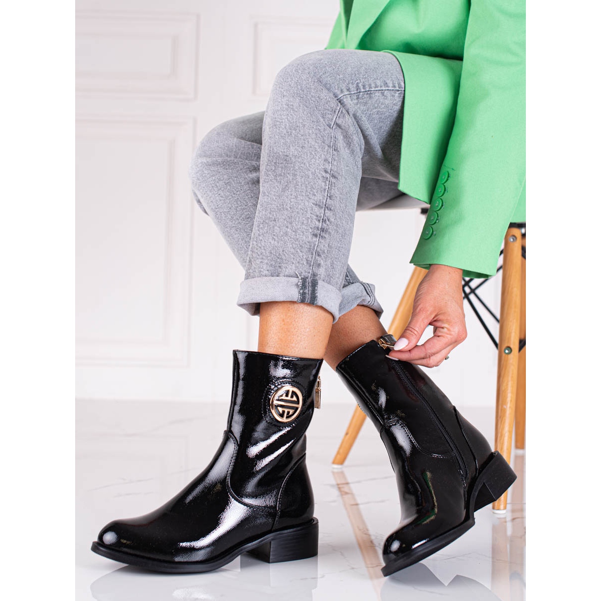 Lo stile casual fa sì che gli stivaletti si adattino a molti outfit diversi, dai jeans alle gonne. Inoltre, i dettagli di tendenza sotto forma di strass e la finitura laccata conferiscono loro un carattere unico. La cerniera lo rende facile da indossare e da togliere, il che è un grande vantaggio nell'uso quotidiano.
