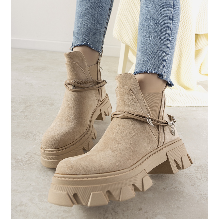 Scopri il fascino unico degli stivali beige con braccialetto Fearless, che sono l'aggiunta perfetta a qualsiasi stile autunnale e invernale. Realizzati in pelle scamosciata ecologica, questi stivaletti unici uniscono eleganza e comfort, offrendo una punta rotonda con un effetto leggermente invecchiato per uno stile distintivo.