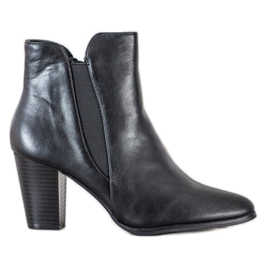 Realizzati in pelle ecologica di alta qualità, gli stivali sono stati progettati pensando all'autunno e all'inverno. La tomaia, che arriva sopra la caviglia, garantisce un adeguato isolamento e comfort di calzata, mentre il tacco largo alto 7,5 cm aggiunge eleganza e sottolinea la figura. Il design delle scarpe è completato da una cerniera laterale, che non solo le rende facili da indossare, ma conferisce loro anche un carattere moderno.