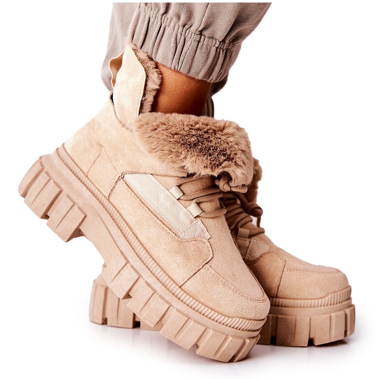 Scopri l'eleganza e la comodità nelle giornate invernali con gli scarponi da trekking beige PM1 Demaris. Queste scarpe uniche sono realizzate con cura in pelle scamosciata ecologica, che non solo le rende belle, ma è anche rispettosa dell'ambiente. L'interno degli stivali è imbottito di pelliccia calda e piacevole, che garantisce comfort e protezione dal freddo.