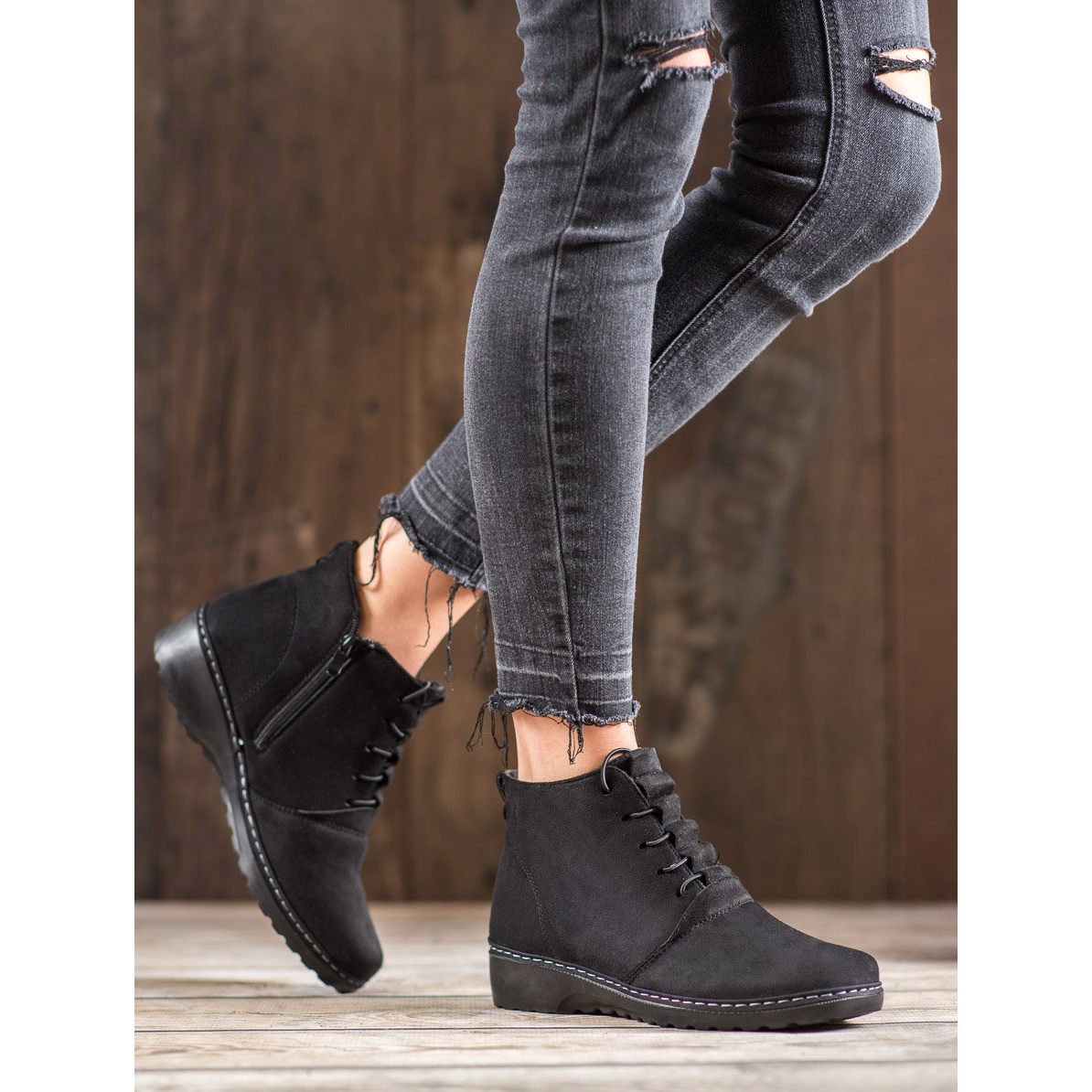 Si tratta di stivaletti CABIN neri che uniscono stile e comodità, perfetti per l'uso quotidiano. Realizzati in ecopelle scamosciata, hanno un aspetto estremamente estetico, il che li rende un'aggiunta perfetta a molti stili.