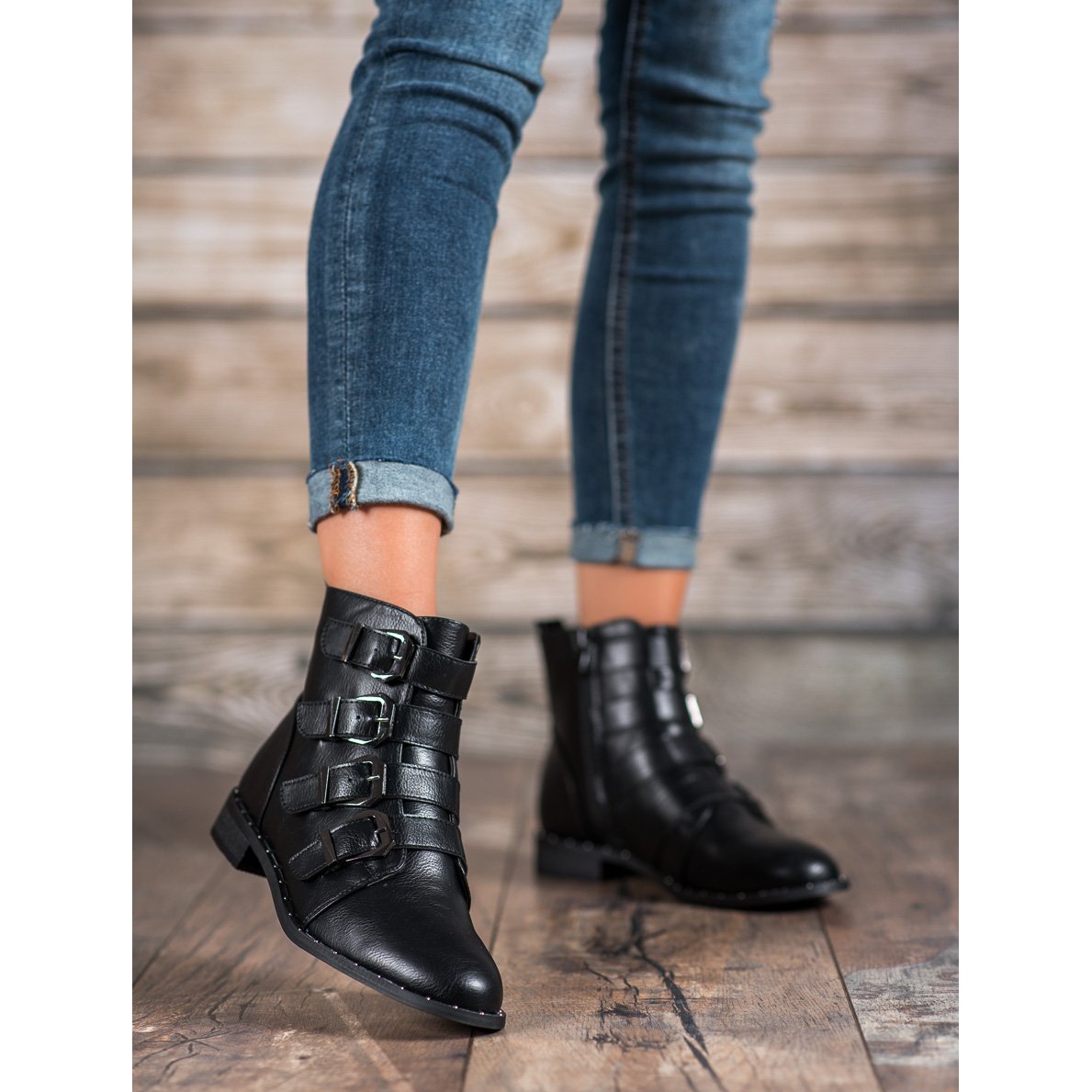 Gli stivaletti con fibbie Cm Paris, neri, sono la scelta perfetta per le donne che apprezzano la combinazione tra comfort e stile rock. Questi stivali neri sono realizzati in pelle ecologica moderna e di alta qualità, che non solo sottolinea il loro aspetto di design, ma si prende cura anche dell'ambiente. Grazie alle fibbie in metallo e agli strass, le scarpe hanno un carattere unico che aggiungerà un tocco di eleganza a qualsiasi styling.