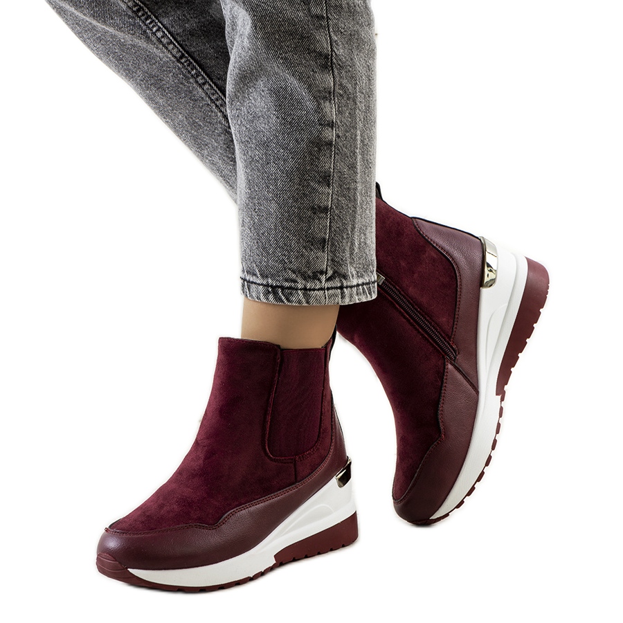 Scopri la straordinaria eleganza e comodità degli stivaletti con zeppa Arkala bordeaux. Queste scarpe uniche non solo si adattano perfettamente alle tendenze attuali, ma garantiscono anche il massimo comfort grazie al leggero isolamento all'interno. Realizzati in pelle scamosciata ecologica, hanno un aspetto estremamente elegante e la loro punta rotonda aggiunge un fascino discreto.