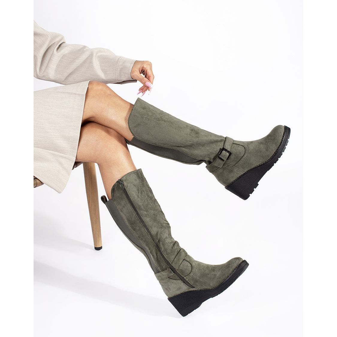- Modello: Stivali con zeppa in camoscio verde scuro