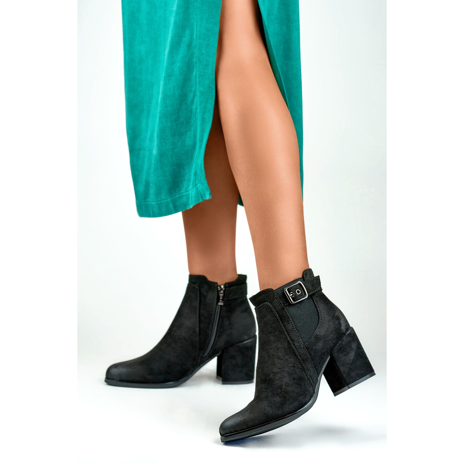 L'alta qualità del materiale e la fodera leggermente isolata garantiscono il comfort e la tomaia alta 10 cm raggiunge la caviglia, proteggendo perfettamente i piedi dal freddo. Inoltre, il lato esterno della tomaia è decorato con un inserto in gomma flessibile e una cinghia sottile rifinita con una fibbia, che conferisce agli stivali un carattere unico.