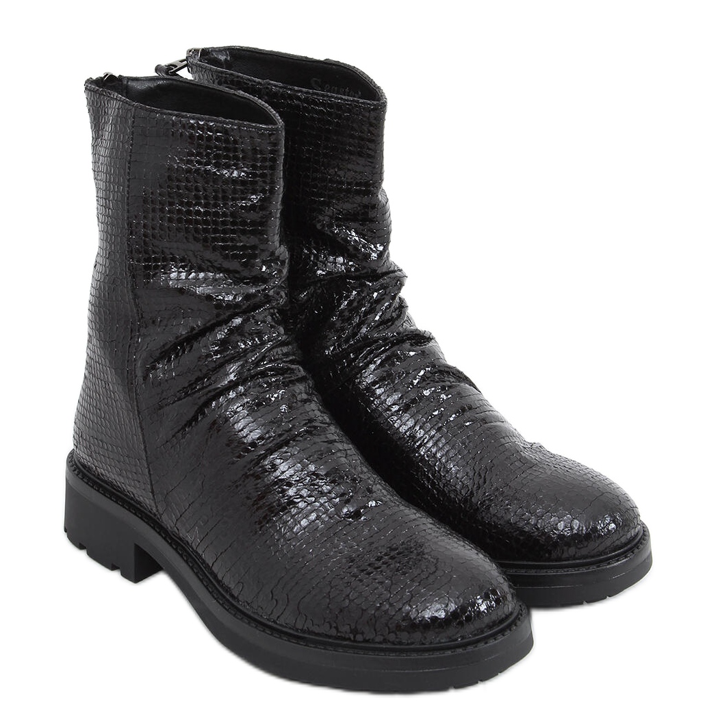 Il modello Gunn Black si distingue per la texture in rilievo e l'originale motivo animale, che attira l'attenzione e aggiunge carattere a qualsiasi styling. L'interno delle scarpe è rivestito in delicata pelliccia, che garantisce un eccellente isolamento, perfetto per le giornate più fredde. La punta tonda e il tacco piatto, largo 4 cm, garantiscono comfort di calzata, mentre la suola in materiale sintetico garantisce solidità e durata.
