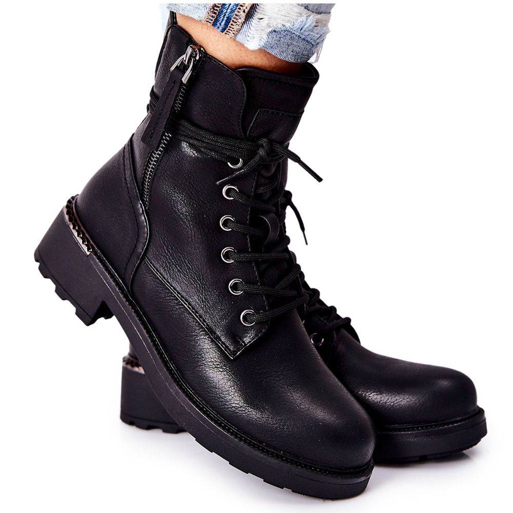 Stivali di lavoro eleganti e pratici realizzati in pelle ecologica. Su due lati, dotati di cursori, che facilitano notevolmente l'esecuzione e l'efficace allacciatura consente di abbinare perfettamente la tomaia al polpaccio. L'isolamento morbido dalla lama di calzature offre comfort termico nei giorni più freddi e l'elemento decorativo con il tallone aggiunge carattere.