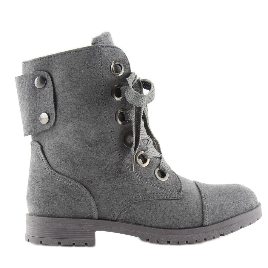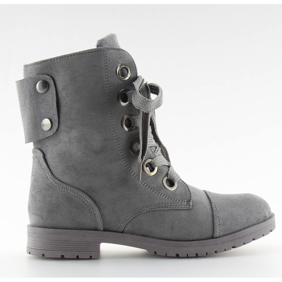 Scopri lo stile unico e il comfort offerti dagli stivaletti da lavoro stringati in grigio 8901 grigio. Questi eleganti stivali da donna in stile militare aggiungeranno un carattere unico a ciascuno dei tuoi stili. Il taglio slim sottolinea i vantaggi della figura femminile e gli strass sul retro della tomaia le conferiscono un tocco in più.
